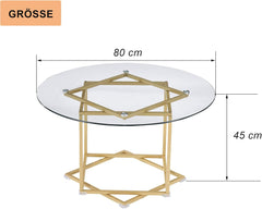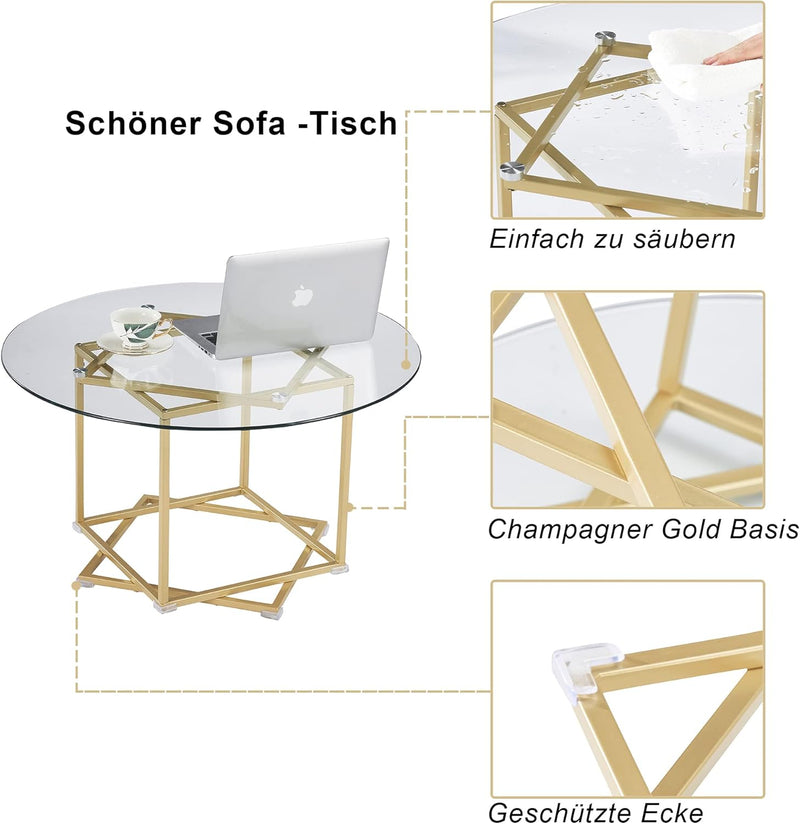 - ★ Élégante table basse ronde en verre facile à nettoyer ★ Une plaque en verre trempé de qualité supérieure se trouve sur le cadre pour une surface d'entretien qui résiste à l'épreuve du temps dans votre espace de vie. Table basse ★ La partie supérieure en verre transparent et la base champagne dorée donnent à cette table un look élégant et élégant pour le salon. Cette table basse est améliorée avec les règles de protection des coins de base