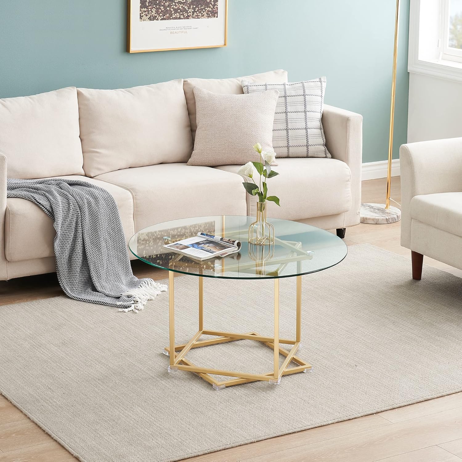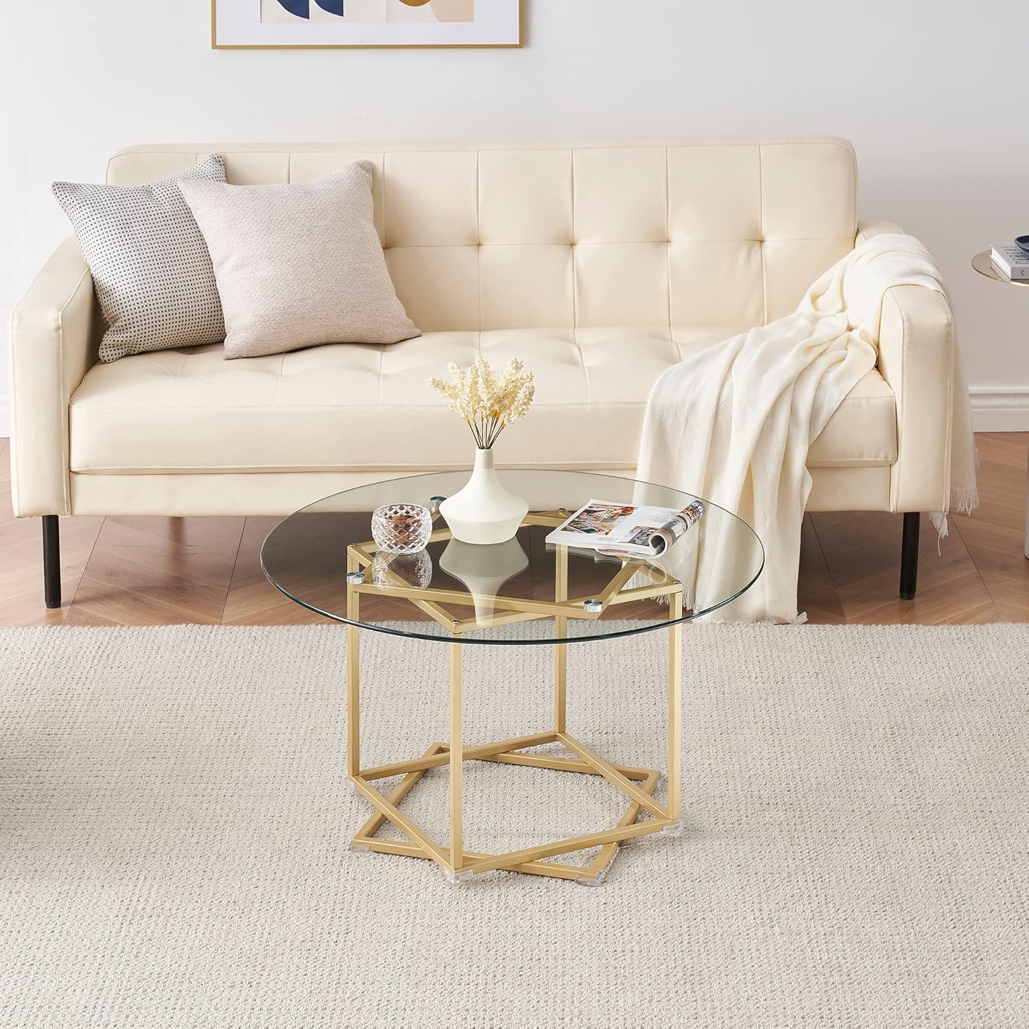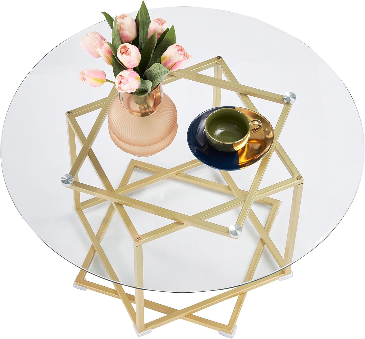 - ★ Table basse ronde en verre facile à nettoyer ★ Un plateau en verre trempé de haute qualité repose sur le cadre pour une surface facile d'entretien qui résistera à l'épreuve du temps dans votre espace de vie.