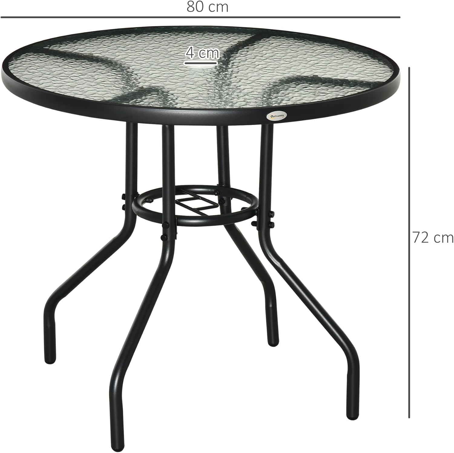 - TABLE DE JARDIN AVEC TROU POUR PARASOL : Dotée d'un trou central de 40 mm, cette table de jardin extérieure permet l'installation facile d'un parasol avec un mât de 38 mm de diamètre