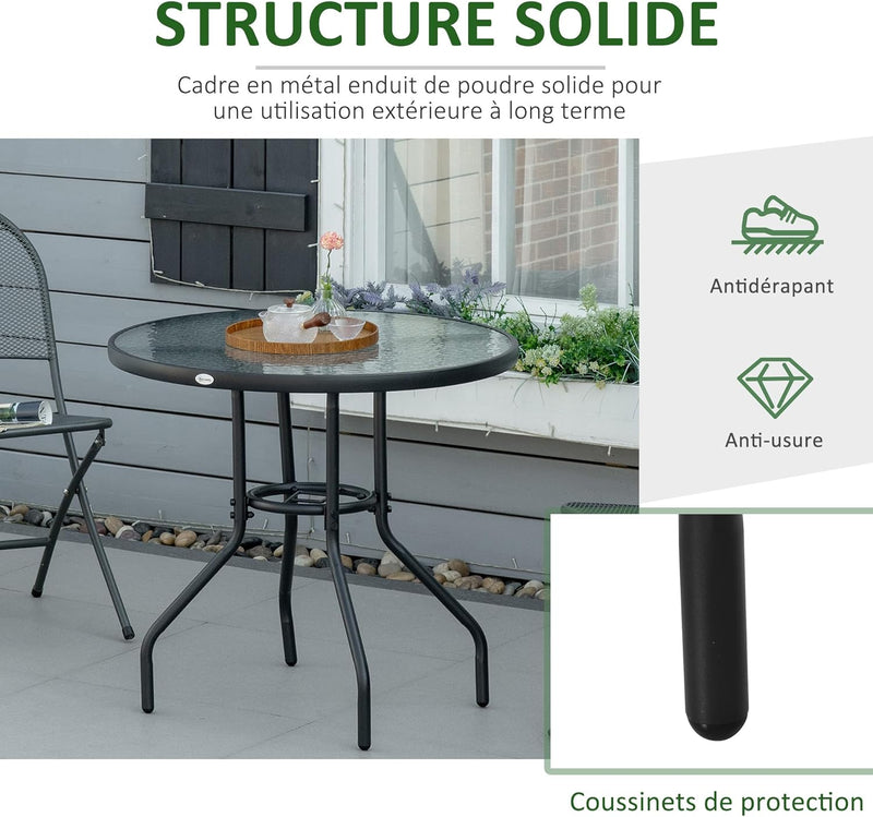 - ROBUSTE ET SÉCURISÉE : Son design circulaire rend cette table à manger extérieure en verre extérieure particulièrement sûre, idéale pour les foyers avec enfants. Elle est aussi pourvue de patins antidérapants et de pieds consolidés pour une meilleure stabilité