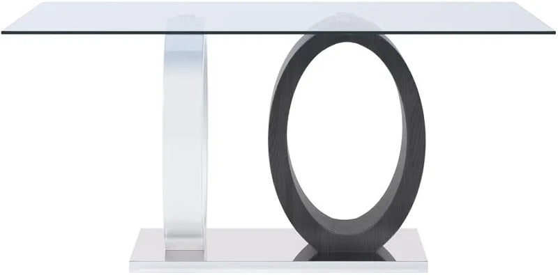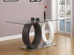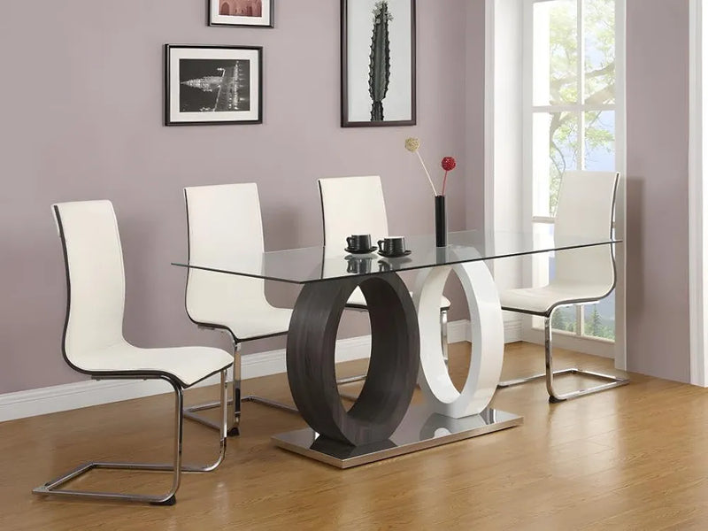- Table en verre trempé AYANE, piètement en MDF et en métal chromé - 6 couverts - Dim : L160 x P90 x H76 cm. Gris & Blanc - Insufflez une touche design à votre intérieur avec la collection AYANE !