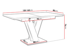 - Longueur du plateau déplié : 160 cm.