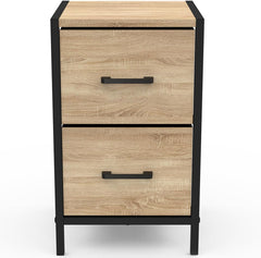 Besoin d'un lot de 2 tables de chevet pour aménager votre chambre à coucher ? Pensez aux 2 tables de chevet UTAH et leurs 2 tiroirs bi-matière. Ultra pratique, chacune des tables de chevet dispose de 2 bacs en tissu avec une façade en effet bois pour stocker vos affaires. Ces grands tiroirs fermés permettront d'organiser votre rangement et de cacher vos affaires personnelles en toute discrétion, pour une chambre dégagée et ordonnée en toutes circonstances.Les tables de chevet d'une hauteur de 50 cm sont parfaites pour garder vos affaires personnelles à portée de main depuis votre lit. Vous pourrez par exemple y ranger des lunettes, des livres, une télécommande ou un pilulier.Grâce à leur structure métallique, leurs 4 pieds en métal, leurs bacs en tissu et leurs panneaux en particules de bois de 1,5 cm d'épaisseur, ces tables de chevet vous assureront une stabilité parfaite.Ce lot de 2 tables de chevet trouvera facilement sa place dans votre chambre à coucher, tout en lui apportant du style grâce à son look très industriel. Multifonction, les tables de chevet 30 x 30 cm peuvent tout à fait servir de meubles d'appoint dans une autre pièce, comme un bureau ou un salon par exemple.Pour une totale harmonie dans votre chambre à coucher, optez pour une association commode et chiffonnier UTAH pour un design assuré ! Dimensions du lot de 2 tables de chevet UTAHDimensions globales : Longueur 30 cm x largeur 30 cm x Hauteur 50 cmDimensions intérieures d'un tiroir : L. 26 x l. 29 x H. 18.5 cmDimensions façade d'un tiroir : L. 26.5 x H. 19 cmDimensions des poignées : L. 10 x l. 2 cmHauteur des pieds : 7 cmMatériaux : Particules de bois 15 mm, métal 15 x 15 mm et fibre non tisséeColoris : Bois et noirÀ monter soi-même Retrouvez l'ensemble de nos commodes sur notre boutique en ligne.