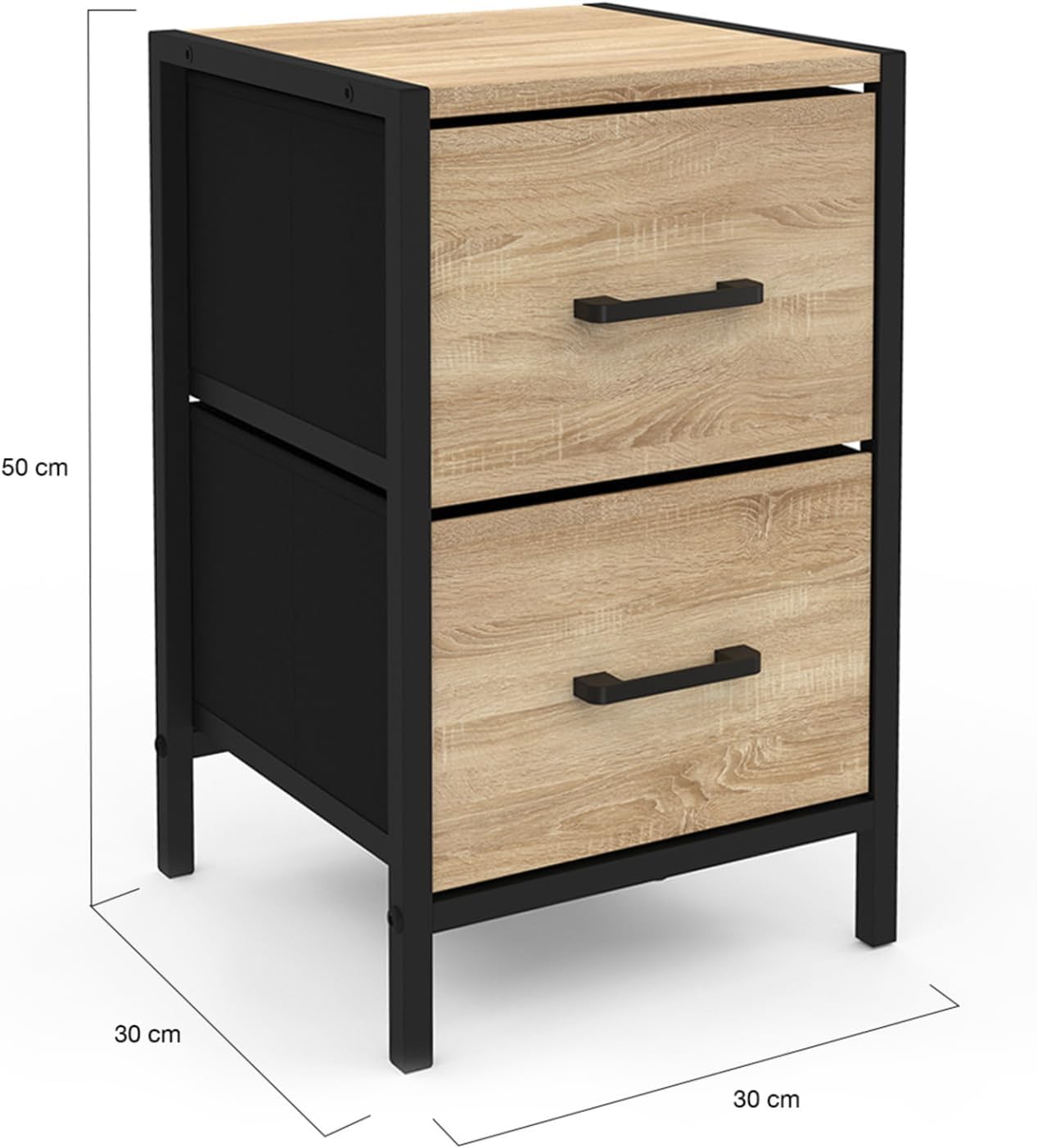 - Dimensions totales: L. 30x P.30 x H.50 cm -Hauteur des tiroirs : 19 cm - 2 tiroirs - Structure métal