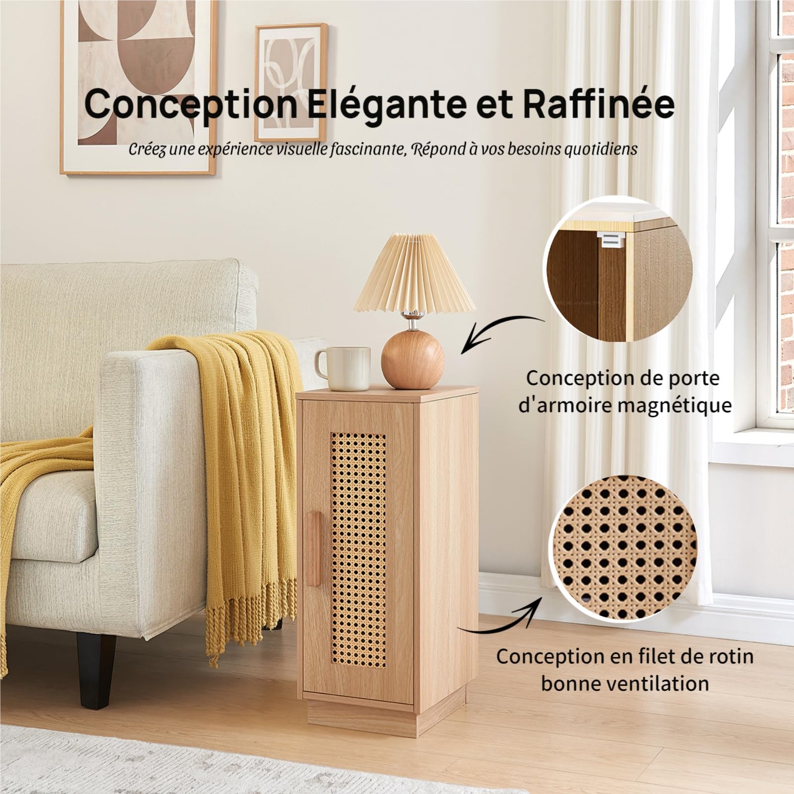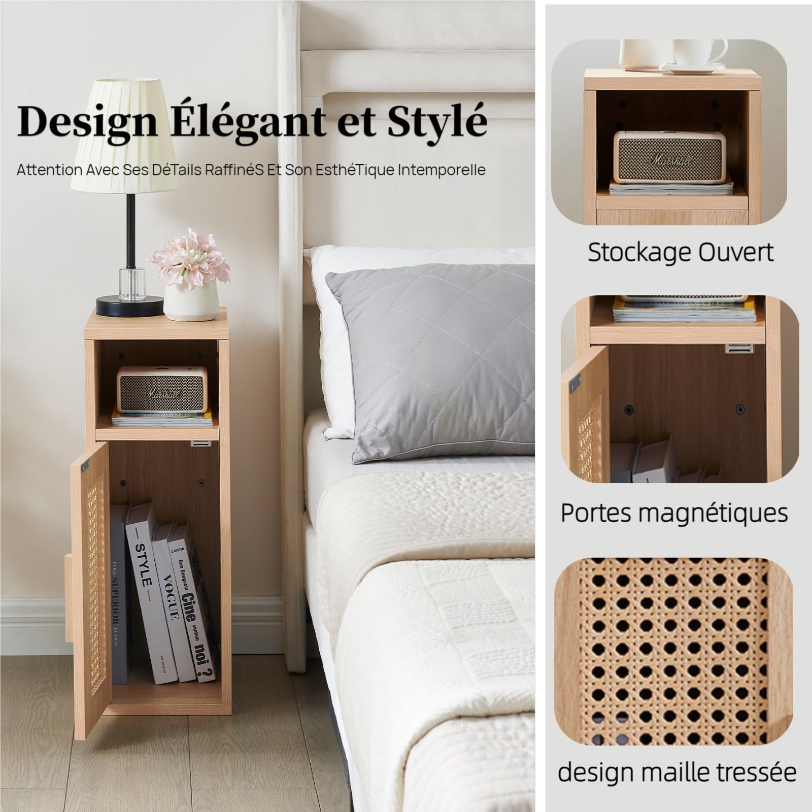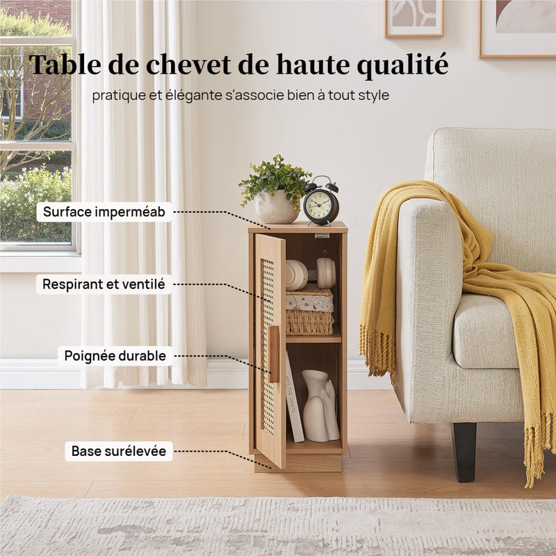 - 【RANGEMENT DIVERSIFIÉ】 Ces Table de Chevet en Bois sont très pratiques avec ses plusieurs compartiments. Table d'appoint de canapé une niche ouverte et un placard fermé composé d'une porte en rotin tressé cannage. Ces tables de chevet pour adulte pourront accueillir des livres et magazines et tous vos effets personnels.Table de chevet lot de 2 fine afin de répondre à vos besoins de rangement quotidiens et maintenir l'ordre.