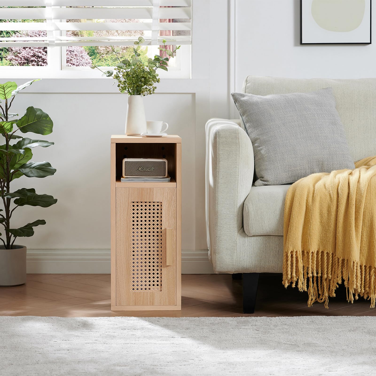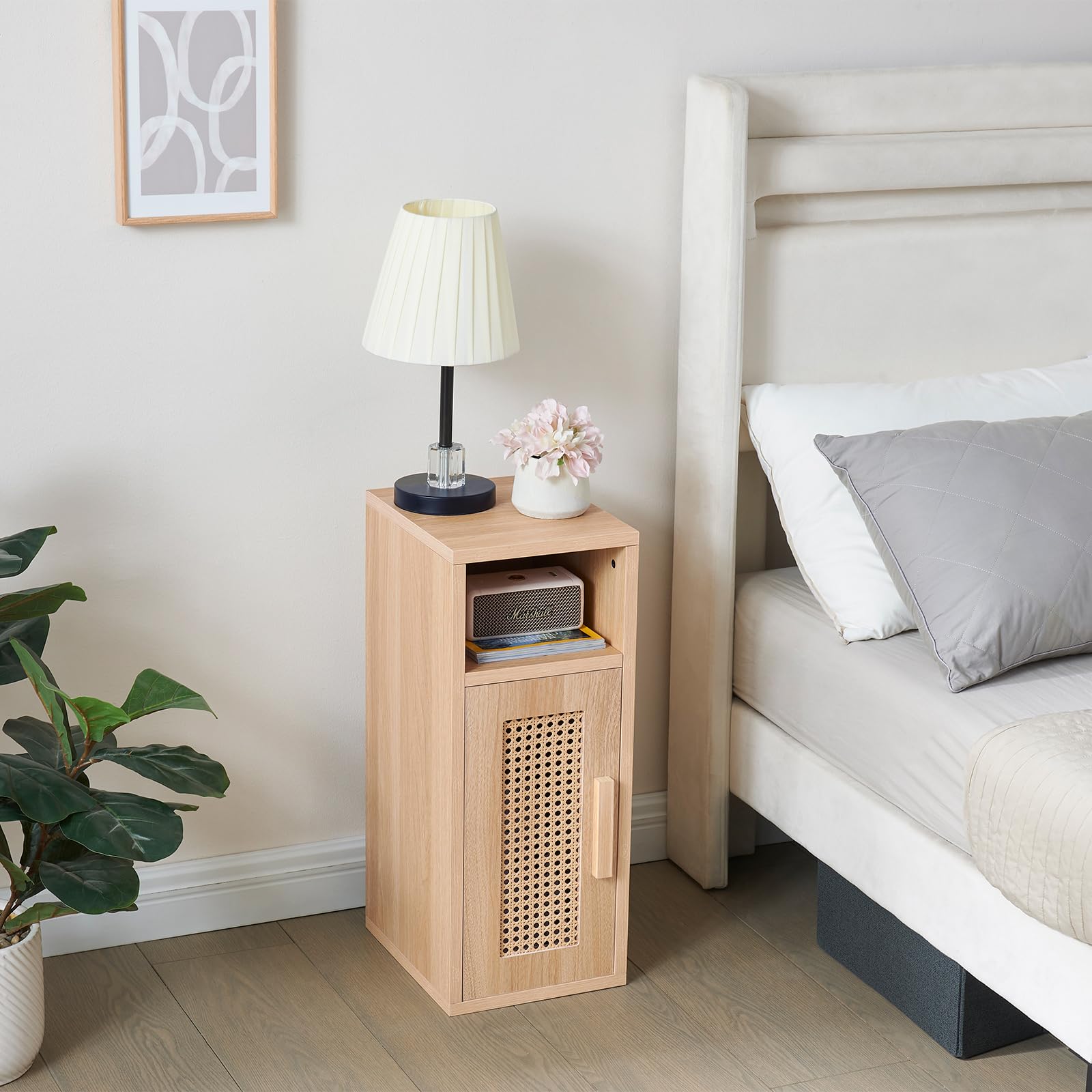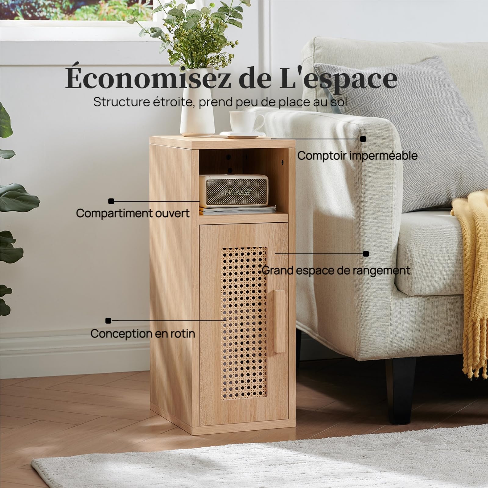 - 【RANGEMENT DIVERSIFIÉ】 Ces Table de Chevet en Bois sont très pratiques avec ses plusieurs compartiments. Table d'appoint de canapé une niche ouverte et un placard fermé composé d'une porte en rotin tressé cannage. Ces tables de chevet pour adulte pourront accueillir des livres et magazines et tous vos effets personnels.Table de chevet lot de 2 fine afin de répondre à vos besoins de rangement quotidiens et maintenir l'ordre.