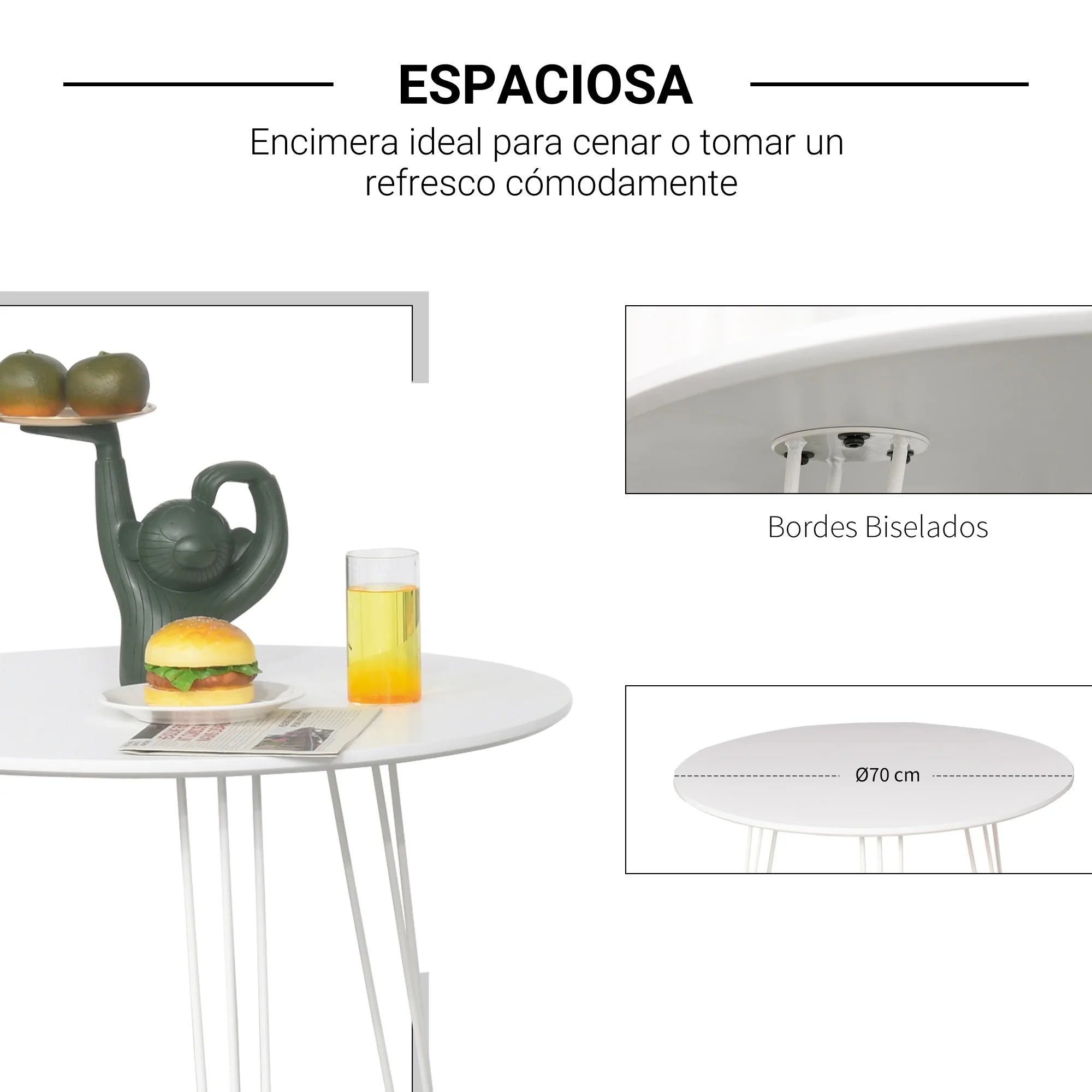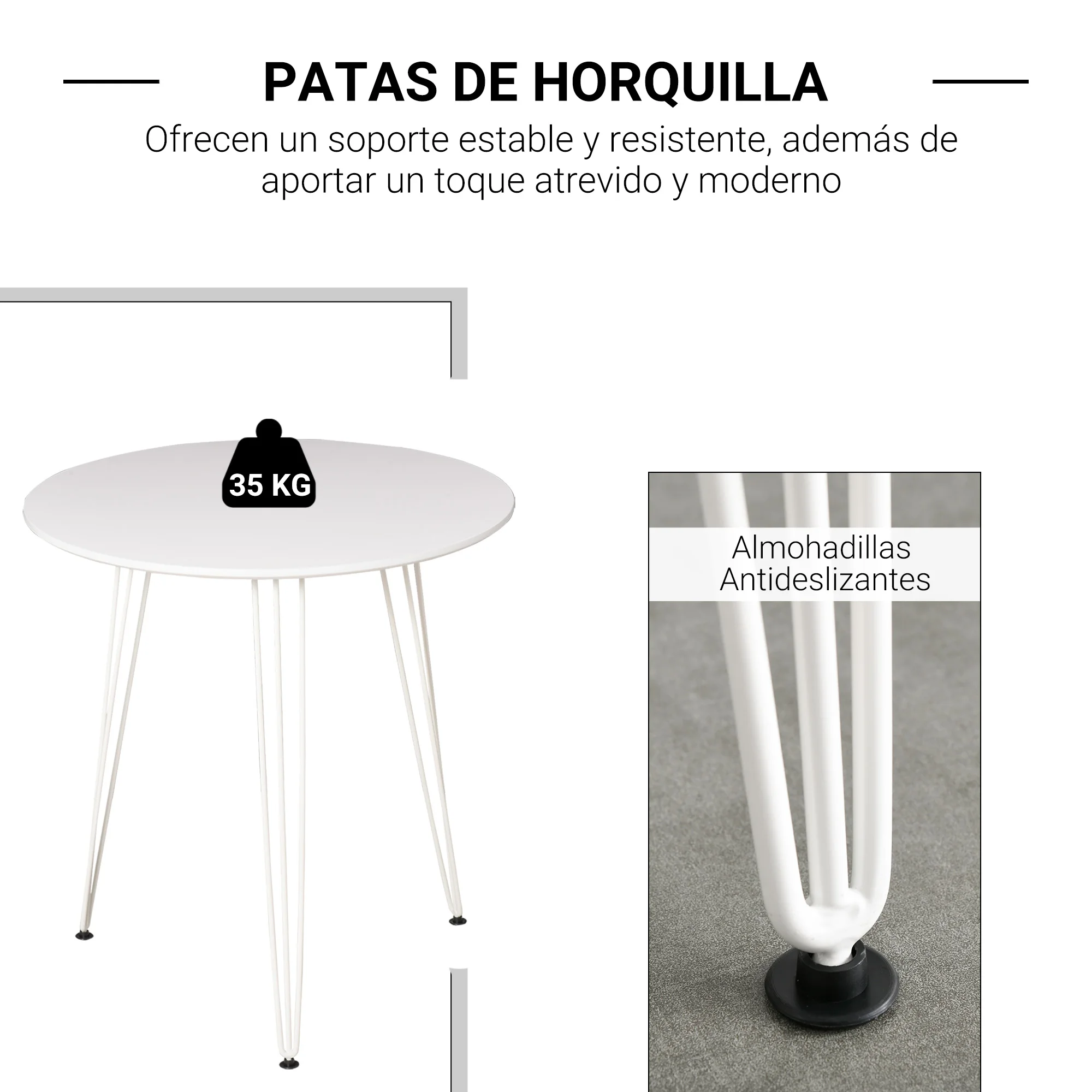If you are looking for a practical table that at the same time has a distinctive touch, you will like this round table from homcom.With a metal structure and mdf wooden countertop, it has 3 legs composed of 3 fork-shaped rods, which in addition to providing great stability, will provide the table with finesse and style.Durable and easy to clean, the edges of the table also have a nice finish.Ideal to eat in it, drink a soda or even read a good book in any interior space.